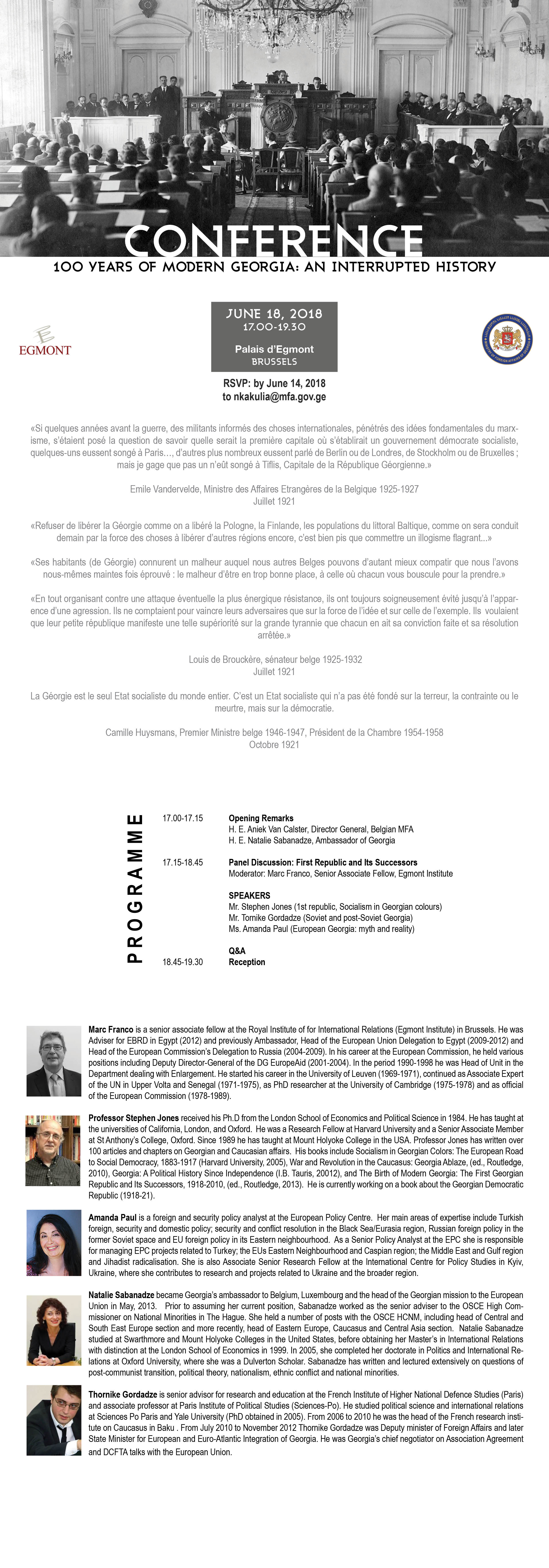 «Si quelques années avant la guerre, des militants informés des choses internationales, pénétrés des idées fondamentales du marxisme, s’étaient posé la question de savoir quelle serait la première capitale où s’établirait un gouvernement démocrate socialiste, quelques-uns eussent songé à Paris…, d’autres plus nombreux eussent parlé de Berlin ou de Londres, de Stockholm ou de Bruxelles ; mais je gage que pas un n’eût songé à Tiflis, Capitale de la République Géorgienne.»